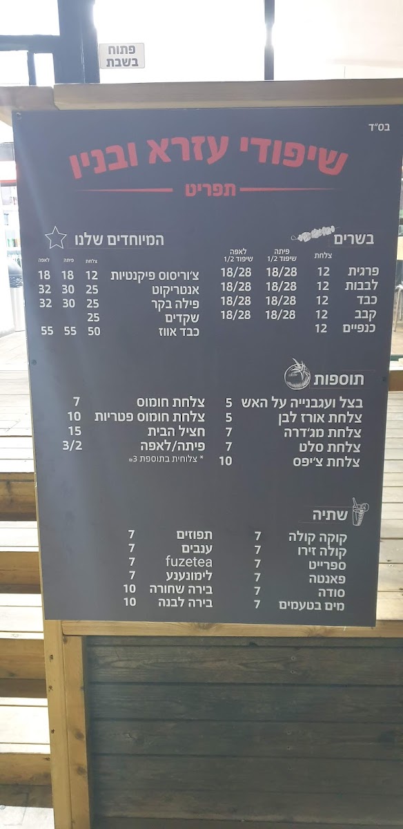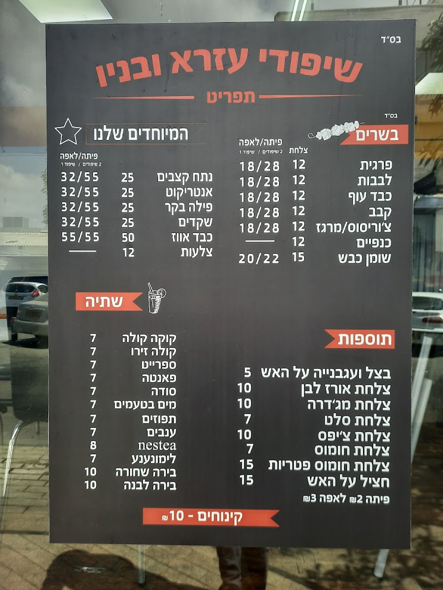 Welcome to Ezra & Sons, a hidden gem nestled on Barshavski St 6 in Rishon LeZion, Israel. This no-frills "shipudia" specializes in mouth-watering grilled skewers, offering a menu that pleases both meat enthusiasts and vegetarians alike. Customers rave about the lamb kebab, perfectly marinated and grilled to zesty perfection, along with their irresistibly fluffy pitas. Priced affordably, a hearty meal can easily satisfy a family without breaking the bank, as noted by diners who enjoyed generous portions and excellent value for money.